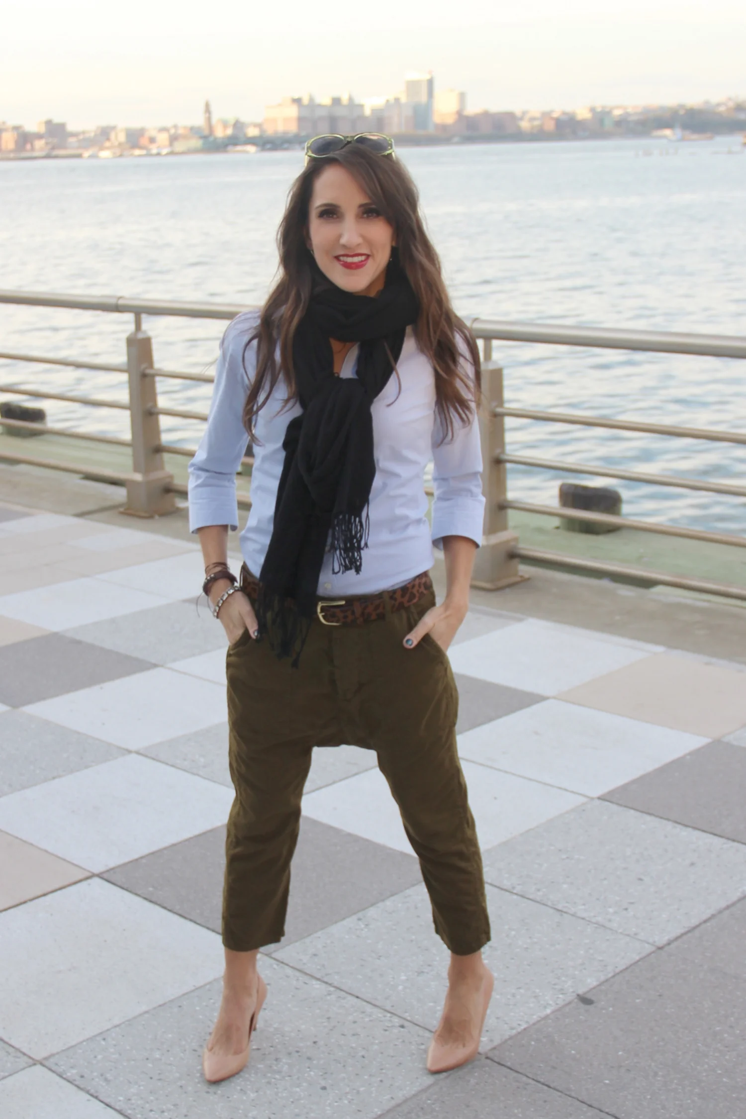 This is the most counter-intuitive pant: VERY loose fit, long and low crotch. But aside from giving an interesting twist on proportions, the comfort and look of these pants look super-feminine when paired with heels!